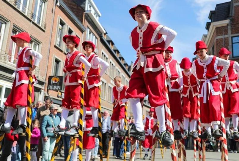 4月15日,演員在比利時那慕爾市傳統(tǒng)民俗日活動上表演。