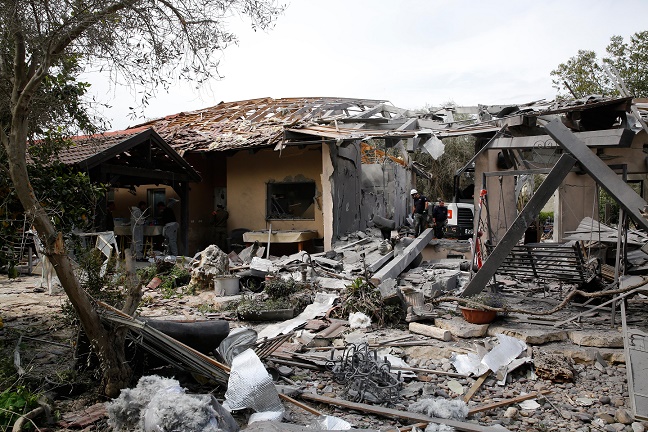 調(diào)查人員檢查被火箭彈損毀的房屋。(資料圖片)