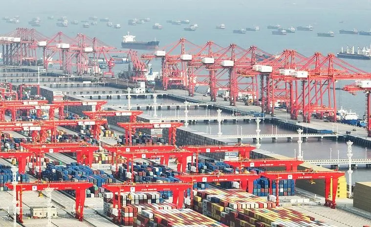 圖為繁忙的江蘇省太倉港集裝箱碼頭。