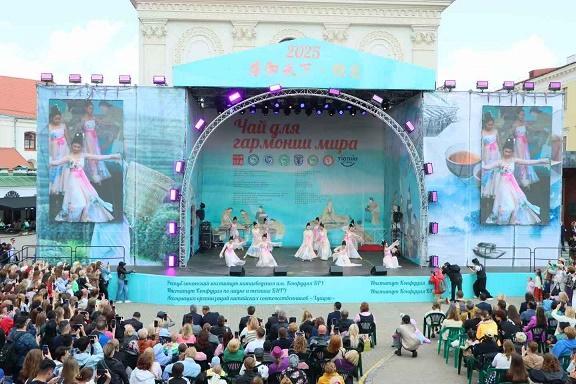“茶和天下?雅集”活動5月31日在白俄羅斯首都明斯克市中心的自由廣場舉行。中國駐白俄羅斯大使張汶川、明斯克市執(zhí)委會第一副主席拉扎列維奇、天津文化藝術(shù)代表團(tuán)團(tuán)長周建軍、白文化部長切爾涅茨基、經(jīng)濟(jì)部副部長阿布拉緬科,以及白政府、議會、政黨、智庫、各國駐白使節(jié)等各界人士近3萬人出席活動。