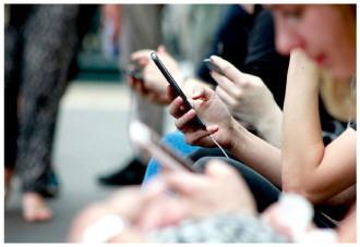 圖為英國青少年用手機(jī)上網(wǎng)。為應(yīng)對日益嚴(yán)峻的青少年“網(wǎng)癮”問題,英國政府近日或?qū)⒃谌珖秶鷥?nèi)頒布一項(xiàng)更為嚴(yán)格的智能手機(jī)限制令。(資料圖片)