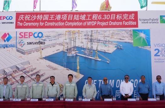 沙特國王港項目陸域工程全面完成慶祝儀式現(xiàn)場。(山東電建供圖)
