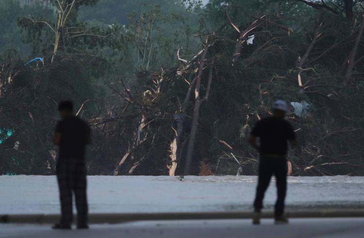 7月4日,在美國得克薩斯州克爾維爾市,人們在瓜達(dá)盧普河沿岸查看。新華社/美聯(lián)