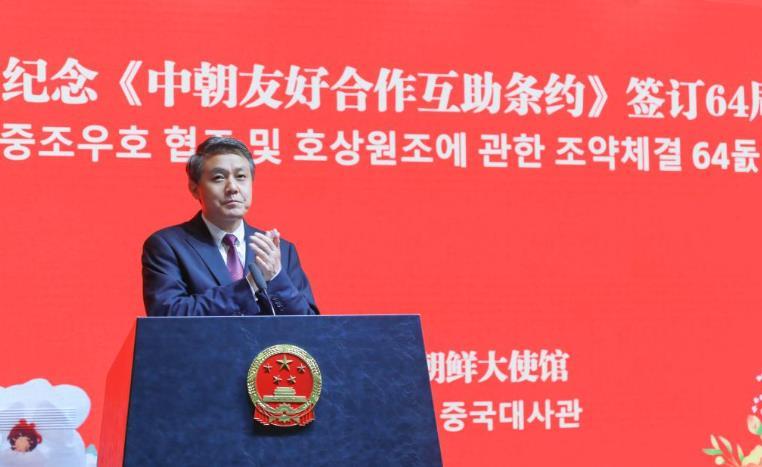 7月9日,在朝鮮首都平壤,中國駐朝鮮大使王亞軍在紀(jì)念《中朝友好合作互助條約》簽訂64周年招待會上致辭。