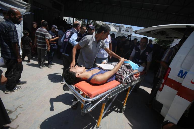 7月20日,傷員被轉移至加沙城的一所醫(yī)院。新華社發(fā)(里澤克·阿卜杜勒賈瓦德攝)