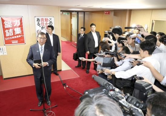 圖為當(dāng)?shù)貢r(shí)間7月23日,日本東京,日本首相石破茂在自民黨總部與三位前首相會(huì)晤后回答記者提問(wèn)。 CFP供圖