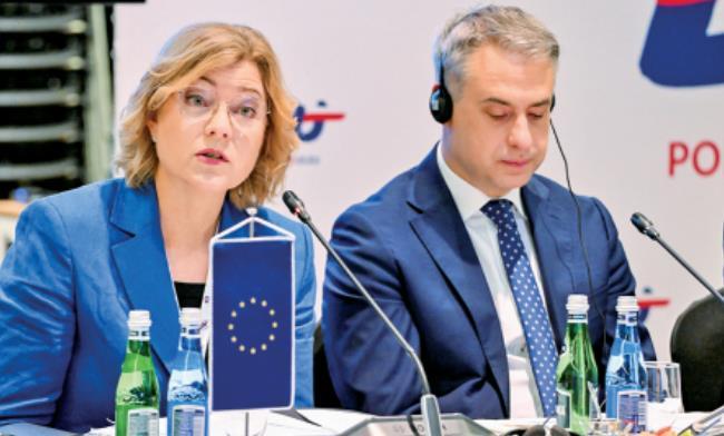 歐盟委員會負(fù)責(zé)技術(shù)主權(quán)等事務(wù)的執(zhí)行副主席漢娜·維爾庫寧(左)9月1日強(qiáng)調(diào),歐盟將繼續(xù)執(zhí)行數(shù)字立法。 CFP供圖