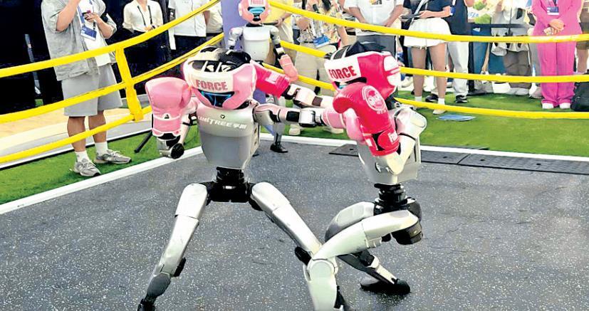 圖為2025外灘大會(huì)上,宇樹科技的機(jī)器人進(jìn)行拳擊賽。新華社記者 張千千 攝