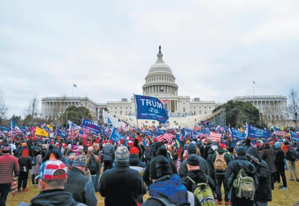 2021年1月6日,在美國首都華盛頓的國會大廈前,特朗普的支持者舉行示威游行。 新華社記者 劉杰攝