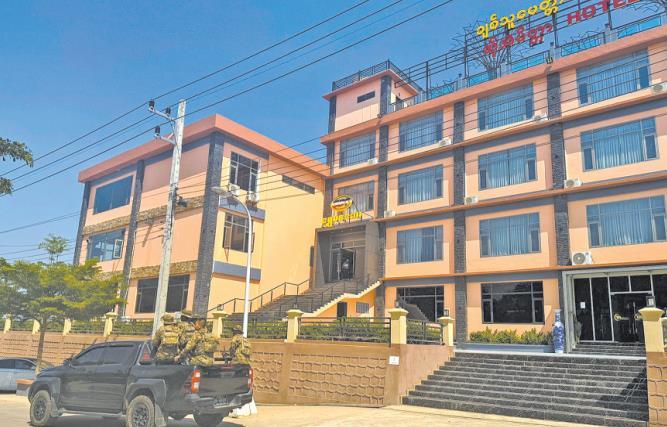 圖為當(dāng)?shù)貢r(shí)間2025年2月14日,緬甸東部妙瓦底鎮(zhèn),克倫邊防部隊(duì)(BGF)成員在水溝谷巡邏,打擊與詐騙中心相關(guān)的非法活動(dòng)。 CFP供圖