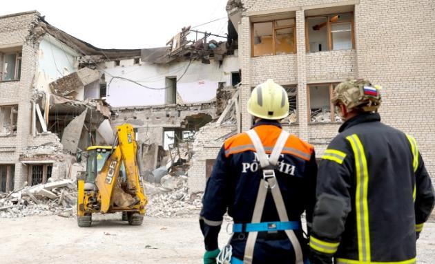 烏克蘭危機(jī)延宕至今,已逾四年時(shí)間。圖為當(dāng)?shù)貢r(shí)間3月16日,頓涅茨克地區(qū)曼古什鎮(zhèn),一棟郵局建筑在無人機(jī)襲擊后部分坍塌。 CFP供圖
