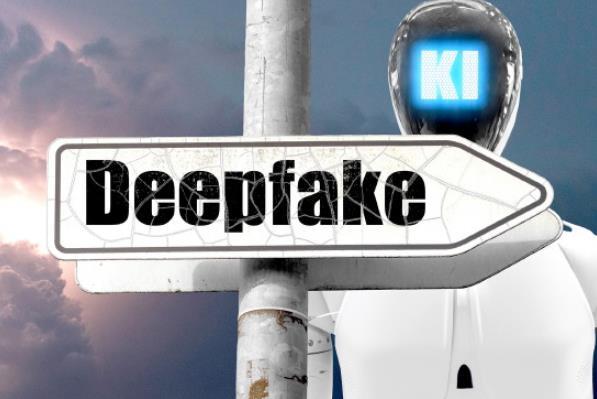 圖為當?shù)貢r間2026年3月12日,在德國巴伐利亞州明德海姆,寫有Deepfake字樣的標識與AI象征形象并置,呈現(xiàn)關(guān)于人工智能生成視頻與聲音的討論。深度偽造技術(shù)可操縱信息,為媒體與社會帶來新挑戰(zhàn)。 CFP供圖