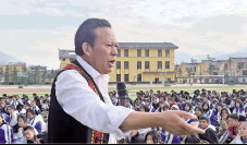 “學好法律明是非,依法護權(quán)不吃虧?!?月20日,在云南省委政法委駐村工作隊和寧蒗縣西川鄉(xiāng)黨委、政府的組織下,西川鄉(xiāng)大柏地村麥架坪花椒加工中心落成,在當?shù)厝罕姛崃业毓恼茪g呼對未來的致富路充滿無限美好憧憬的時候,毛建忠的聲音在花椒加工中心的廣場上響起,他聲情并茂地唱起了彝漢雙語普法順口溜,原本晦澀難懂的法律知識變成了老鄉(xiāng)們聽得懂的鄉(xiāng)土故事,贏得村民陣陣掌聲。