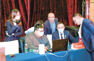 圖為張磊(右二)在上海市期貨同業(yè)公會公證現(xiàn)場監(jiān)督投票結果。 張江公證處供圖