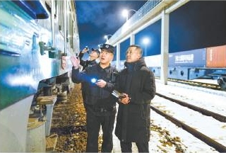 當(dāng)吳浩趕到執(zhí)勤點(diǎn)時(shí),當(dāng)班執(zhí)勤的檢查員民警王帥和王永發(fā)已身著輕便的執(zhí)勤服、攜帶執(zhí)勤裝備,整齊地站在中歐班列一側(cè),準(zhǔn)備執(zhí)行檢查任務(wù)。