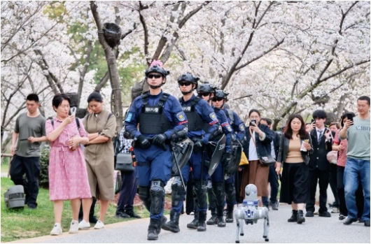 3月22日,江蘇省無錫市黿頭渚景區(qū)內(nèi),櫻花競相綻放。櫻花樹下,游人如織,歡聲笑語不斷。長春橋邊、櫻花谷入口、賞櫻閣下……執(zhí)勤警力在默默守護(hù)。每年春天,八方游客來錫,共赴櫻花之約。平均每日數(shù)萬名游客涌入5.39平方公里的景區(qū),如何守護(hù)景區(qū)和游客的安全,守住游客對無錫的美好印象,成為無錫警方的“必答題”。