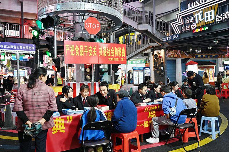 龍?zhí)锓ㄍミ€創(chuàng)新“法治夜市”模式,將客流量較大的周六定為“夜市審判日”,通過就地收案、巡回審判,集中公開審理夜市糾紛案件,促成糾紛高效就地化解,生動(dòng)演繹“身邊的今日說法”,護(hù)航夜市經(jīng)濟(jì)健康有序發(fā)展。