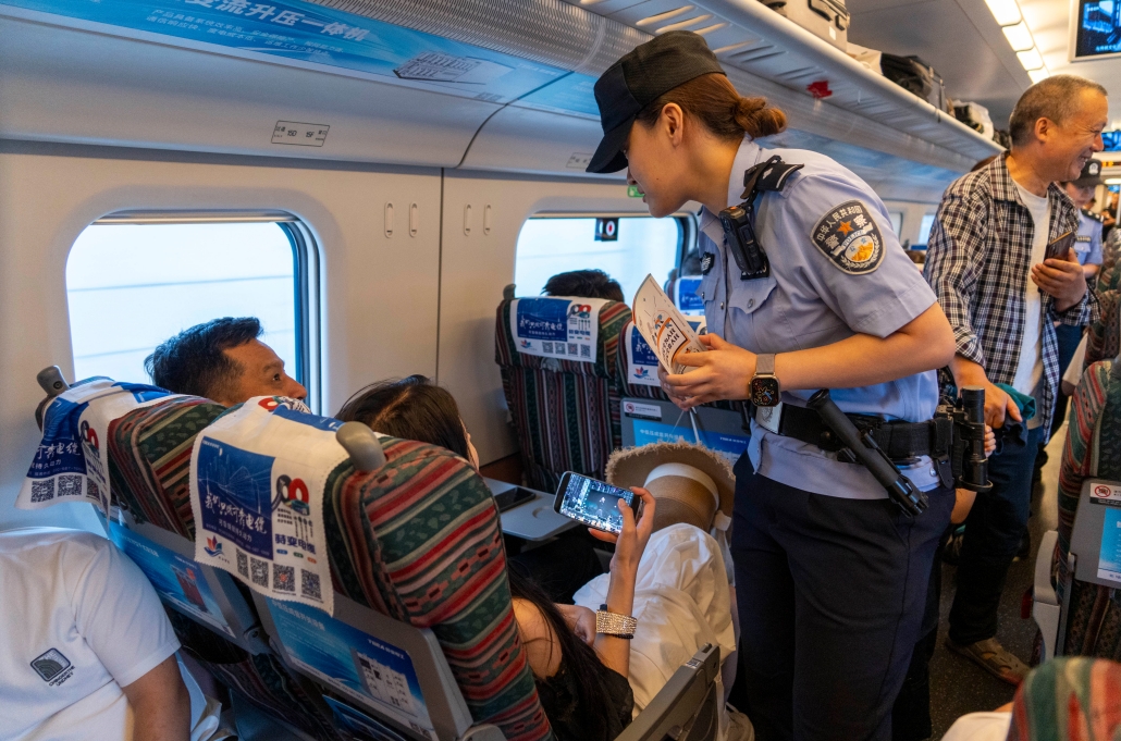 7月13日,正值暑運(yùn)高峰與旅游旺季疊加,客流量持續(xù)攀升,烏魯木齊鐵路公安處乘警支隊(duì)精準(zhǔn)發(fā)力,全面開展打擊整治突出違法犯罪專項(xiàng)行動,為旅客出行保駕護(hù)航。其中,“絲路風(fēng)華”女子乘警組主動擔(dān)當(dāng)作為,通過加大對車廂、站臺的巡視密度,及時排查安全隱患、化解矛盾糾紛,提升見警率與管事率。同時,面向?qū)W生開展案例講解、互動問答,深入淺出地宣傳普及防猥褻、防電詐和乘車安全知識,切實(shí)提高學(xué)生的自我保護(hù)意識與防范能力,全力確保暑運(yùn)期間旅客平安出行。