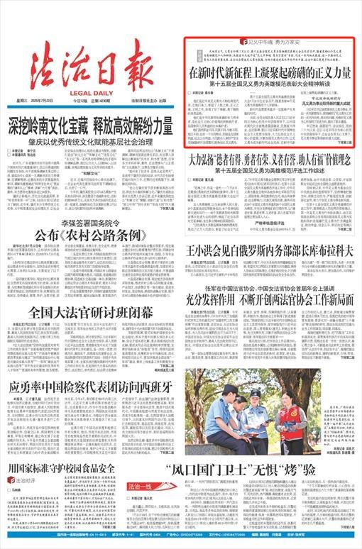 天地有正氣,義勇古今頌。7月21日,第十五屆全國(guó)見義勇為英雄模范表彰大會(huì)在北京召開,隆重表彰60個(gè)見義勇為英雄模范個(gè)人和群體。本報(bào)自今天起開設(shè)“見義中華魂 勇為萬家安”專欄,刊發(fā)一系列相關(guān)報(bào)道,進(jìn)一步推動(dòng)見義勇為工作高質(zhì)量發(fā)展,在全社會(huì)營(yíng)造見義勇為氛圍,為助力建設(shè)更高水平的平安中國(guó)、法治中國(guó)匯聚更多的正能量。