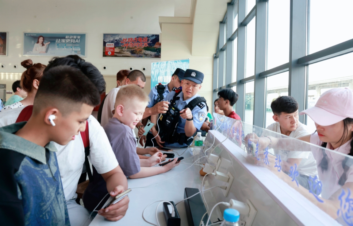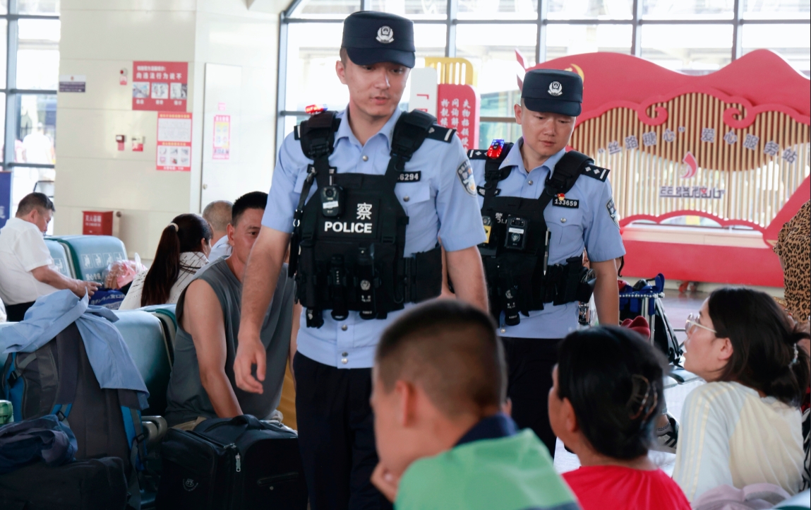 “出現(xiàn)警情后,指揮室會第一時(shí)間通知相關(guān)警力到現(xiàn)場處置?!彼L王彥帥表示,在車站秩序維護(hù)上,派出所針對暑運(yùn)客流高峰特征,科學(xué)調(diào)配警力資源,加密售票廳、候車室等重點(diǎn)區(qū)域的巡邏頻次與管控力度,及時(shí)疏導(dǎo)擁堵人群,引導(dǎo)旅客有序購票、安檢、候車。此外,民警主動延伸服務(wù)觸角,為旅客提供問詢指引、失物查找等便民服務(wù)。