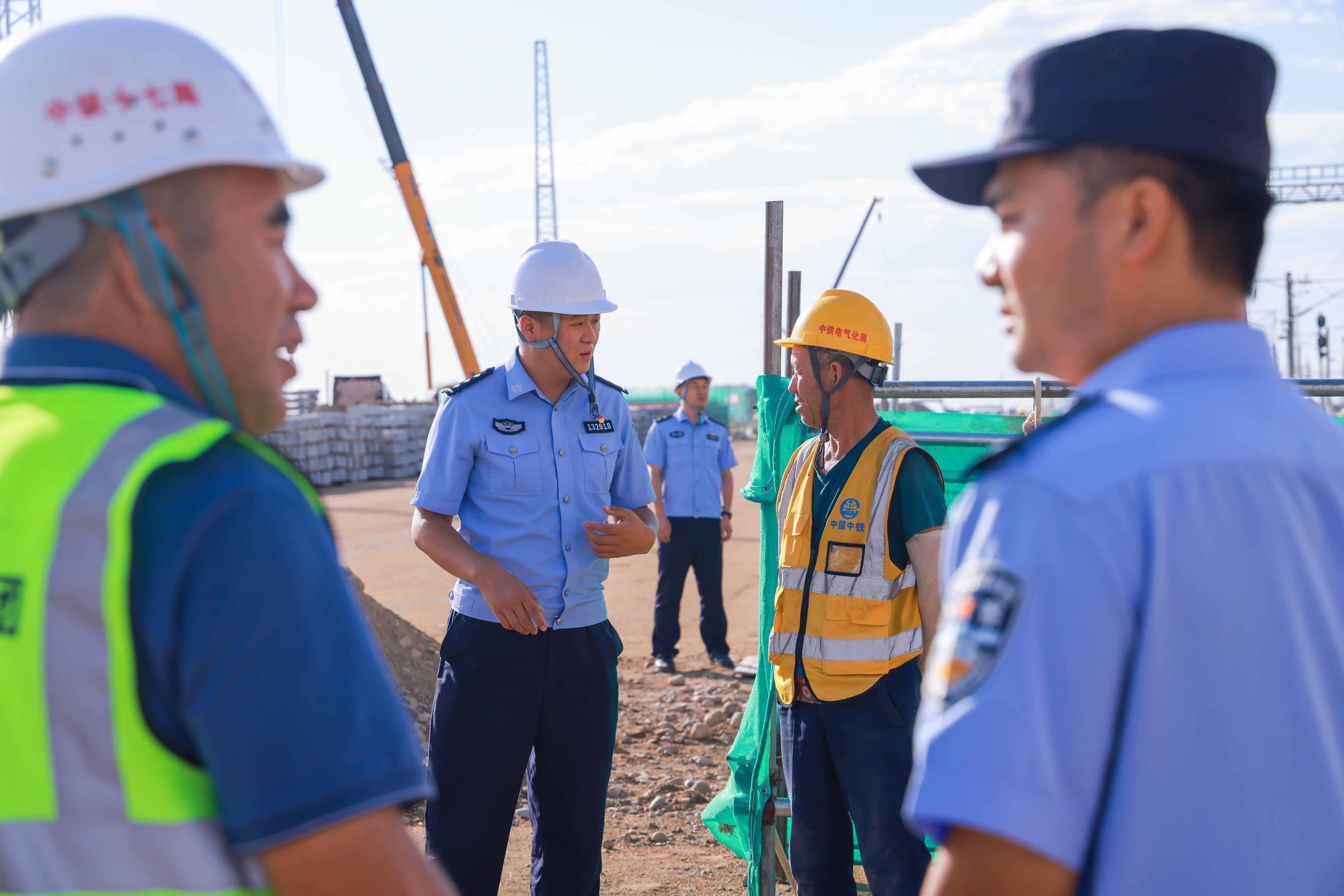 圖為8月20日,哈密公安處刑偵支隊民警在哈密東站施工現(xiàn)場開展“沉浸式”普法宣傳和安全檢查?!?/span>
