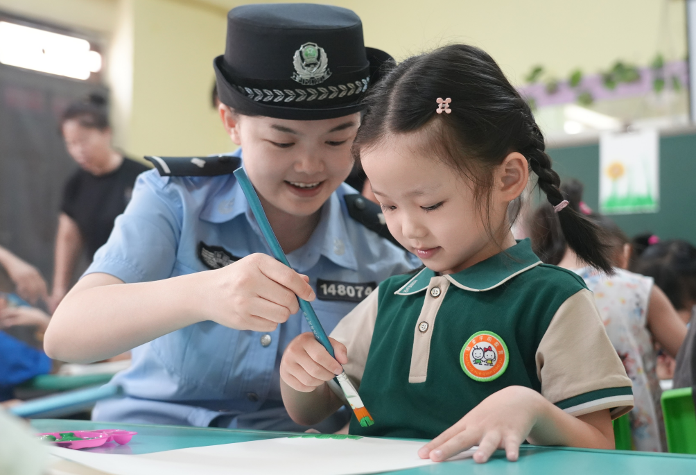 圖為民警在幼兒園開展“尊師重教 與法同行”主題活動(dòng)。