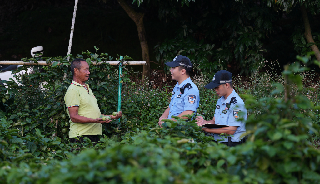 春季番石榴綴滿枝頭,夏日荔枝、龍眼、黃皮果壓彎樹梢,秋季黃金百香果迎來豐收,冬季火龍果持續(xù)飄香。廣西壯族自治區(qū)欽州市浦北縣白石水鎮(zhèn)作為“特色水果小鎮(zhèn)”,全年不間斷的水果產(chǎn)業(yè)成為富民強(qiáng)村的核心引擎。近年來,白石水派出所緊扣轄區(qū)產(chǎn)業(yè)發(fā)展需求,將“水果警務(wù)”融入日常工作,從反詐宣傳、糾紛調(diào)解到案件偵破、民生服務(wù),全方位守護(hù)果農(nóng)權(quán)益與產(chǎn)業(yè)秩序,用“警察藍(lán)”為“特色水果小鎮(zhèn)”建設(shè)保駕護(hù)航。