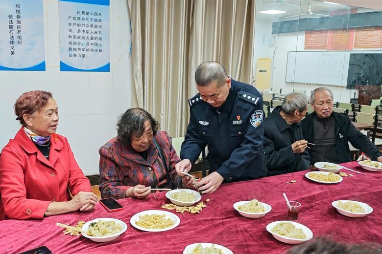 圖為邵奇(中)在重陽(yáng)節(jié)前夕為轄區(qū)獨(dú)居老人辦餃子宴。