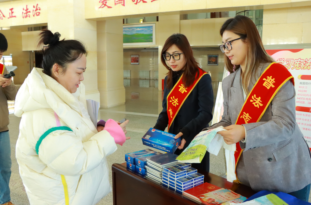 在第十二個“國家憲法日”來臨之際,內(nèi)蒙古自治區(qū)呼倫貝爾市司法局普法志愿者帶著滿滿的“法治干貨”,共赴一場“憲法之約”。普法志愿者在河西新區(qū)政務綜合樓機關二樓南門搭建普法宣傳展臺?,F(xiàn)場擺放著憲法主題宣傳展板,普法志愿者以通俗易懂的語言,結(jié)合展板內(nèi)容向往來的機關干部職工講解憲法的發(fā)展歷程、憲法的作用、憲法保障公民的基本權(quán)利等內(nèi)容,帶來“零距離”的普法服務,有效增強了國家工作人員的法治觀念和法律意識。