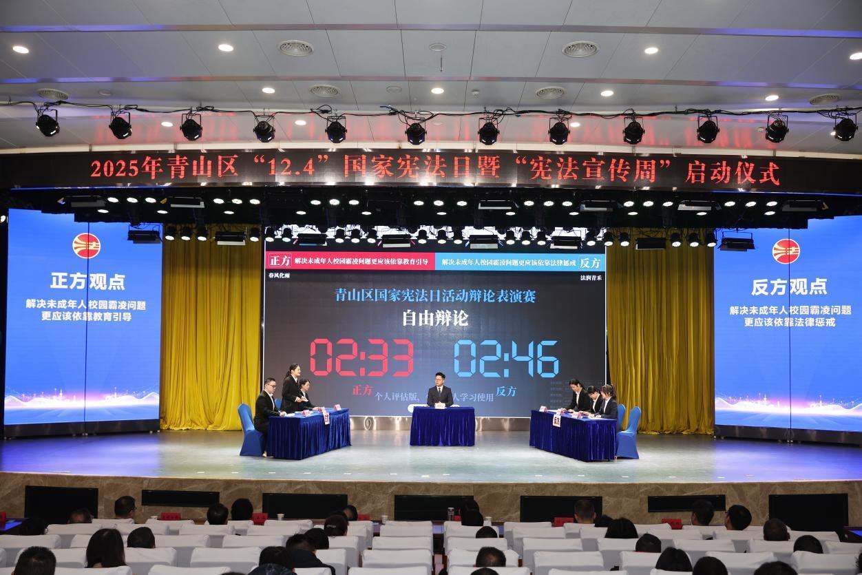 圍繞“解決未成年人校園霸凌問(wèn)題,更應(yīng)該依靠教育引導(dǎo)還是法律懲戒”這一辯題,由青山區(qū)律師行業(yè)優(yōu)秀代表與武漢科技大學(xué)法學(xué)專業(yè)學(xué)生代表組成的正反兩方展開(kāi)激烈辯論。