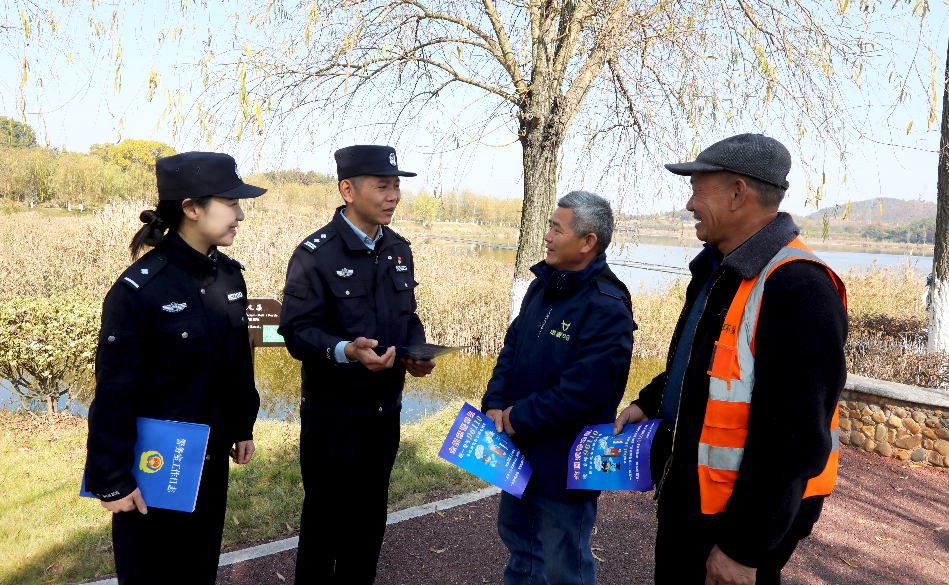 圖為12月22日,民警在分宜縣濕地公園向群眾宣傳反詐知識。