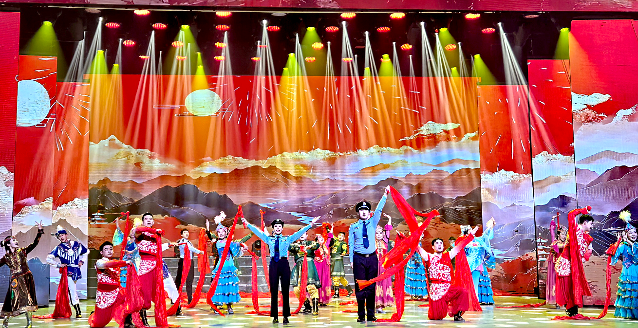 1月8日下午,烏魯木齊鐵路公安局舉辦慶祝第六個中國人民警察節(jié)暨“警旗映初心·護航新征程”文藝展演,以歌舞、樂隊演唱、音樂劇、小品、武術、擒敵拳與隊列展示等,展現(xiàn)了鐵路公安的履職日常,打擊犯罪的雷霆之勢,服務旅客的溫情瞬間。