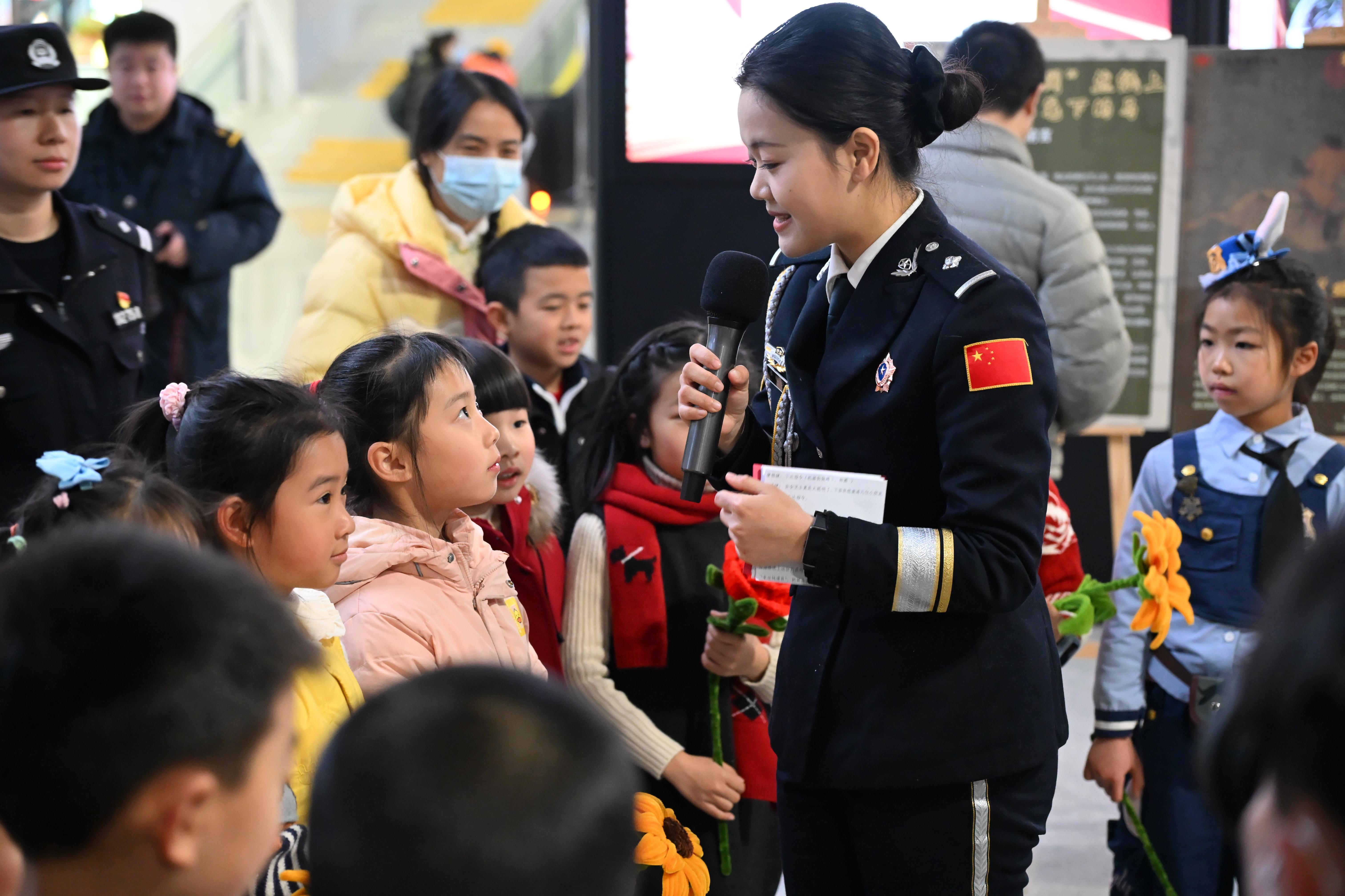 2月3日,春運返程客流正逐步攀升。南寧鐵路公安局柳州公安處桂林站派出所在候車室開展鐵路安全宣傳,通過趣味有獎競答向旅客普及出行安全知識,護(hù)航春運溫馨有序。