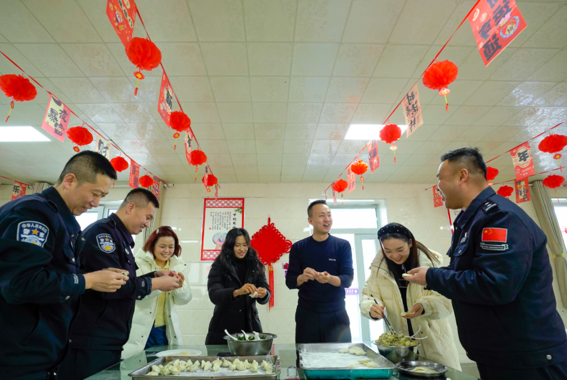 春節(jié)期間,新疆出入境邊防檢查總站昌吉邊境管理支隊庫甫邊境派出所洋溢著濃濃的團圓氣息。2月16日至18日,派出所開展“千里探親進警營 邊關團圓賀新春”系列活動,民警家屬跨越千里走進警營,體驗民警巡邊日常,包餃子、話家常,一同做親子游戲,與堅守崗位的民警共度別樣春節(jié)。
