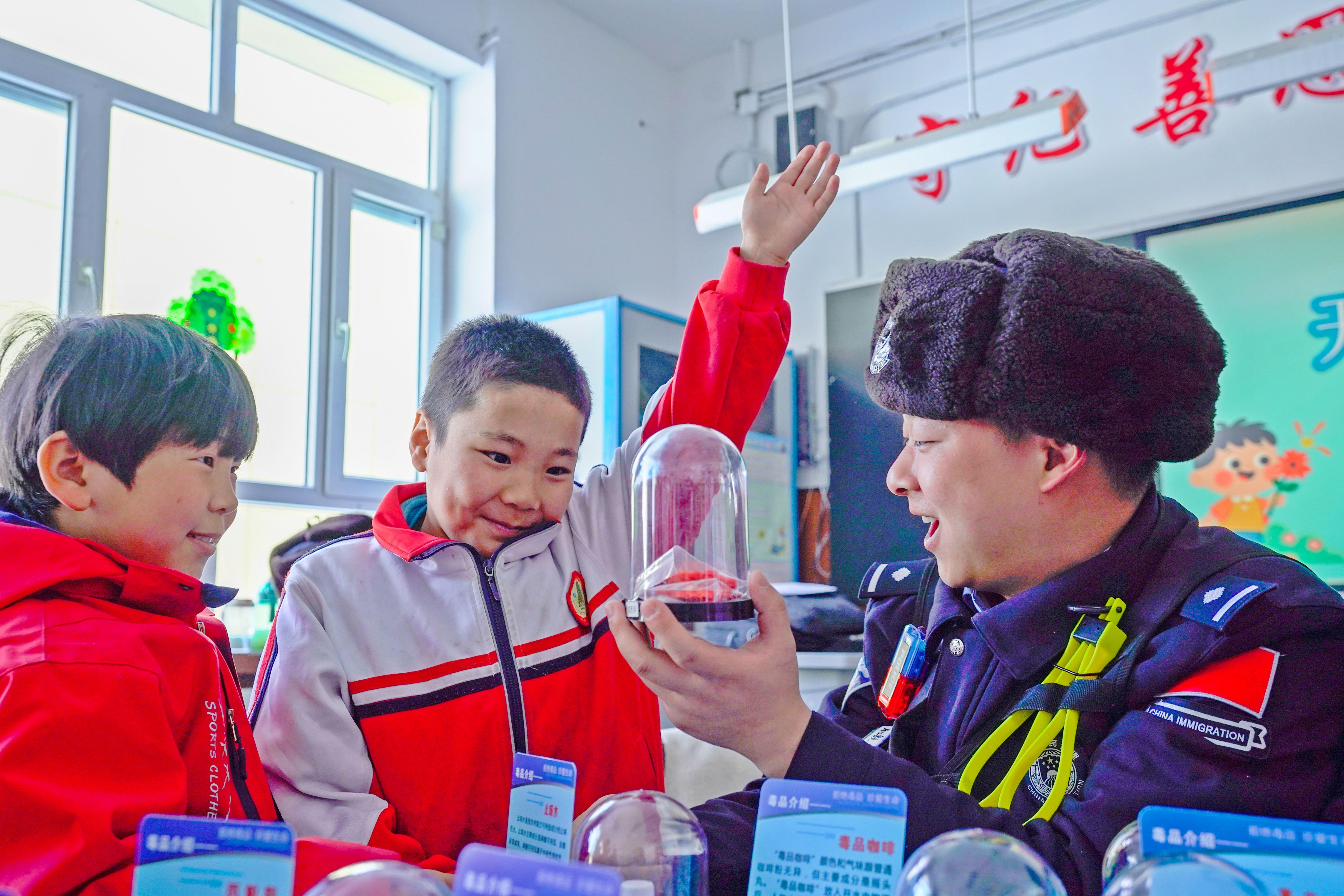 3月2日,新疆出入境邊防檢查總站昌吉邊境管理支隊(duì)庫甫邊境派出所和蘇吉邊境檢查站民警共同走進(jìn)北塔山牧場小學(xué)校,利用學(xué)校開展“開學(xué)第一課”法宣主題班會的時(shí)機(jī),向?qū)W校師生宣傳識毒防毒知識以及邊境管理相關(guān)法律知識,在寓教于樂中,增強(qiáng)牧區(qū)小學(xué)師生識毒防毒及學(xué)法用法意識。