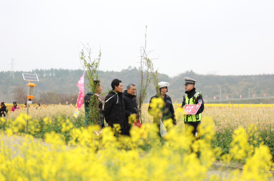 3月4日,江西省遂川縣在枚江鎮(zhèn)瑤溪村舉辦“共赴春日盛宴暨四季村晚展演”油菜賞花季活動(dòng)。遂川縣公安局交管大隊(duì)積極做好沿線道路交通秩序維護(hù)工作,并組織民警走進(jìn)花海,向游客宣傳交通安全知識(shí)。