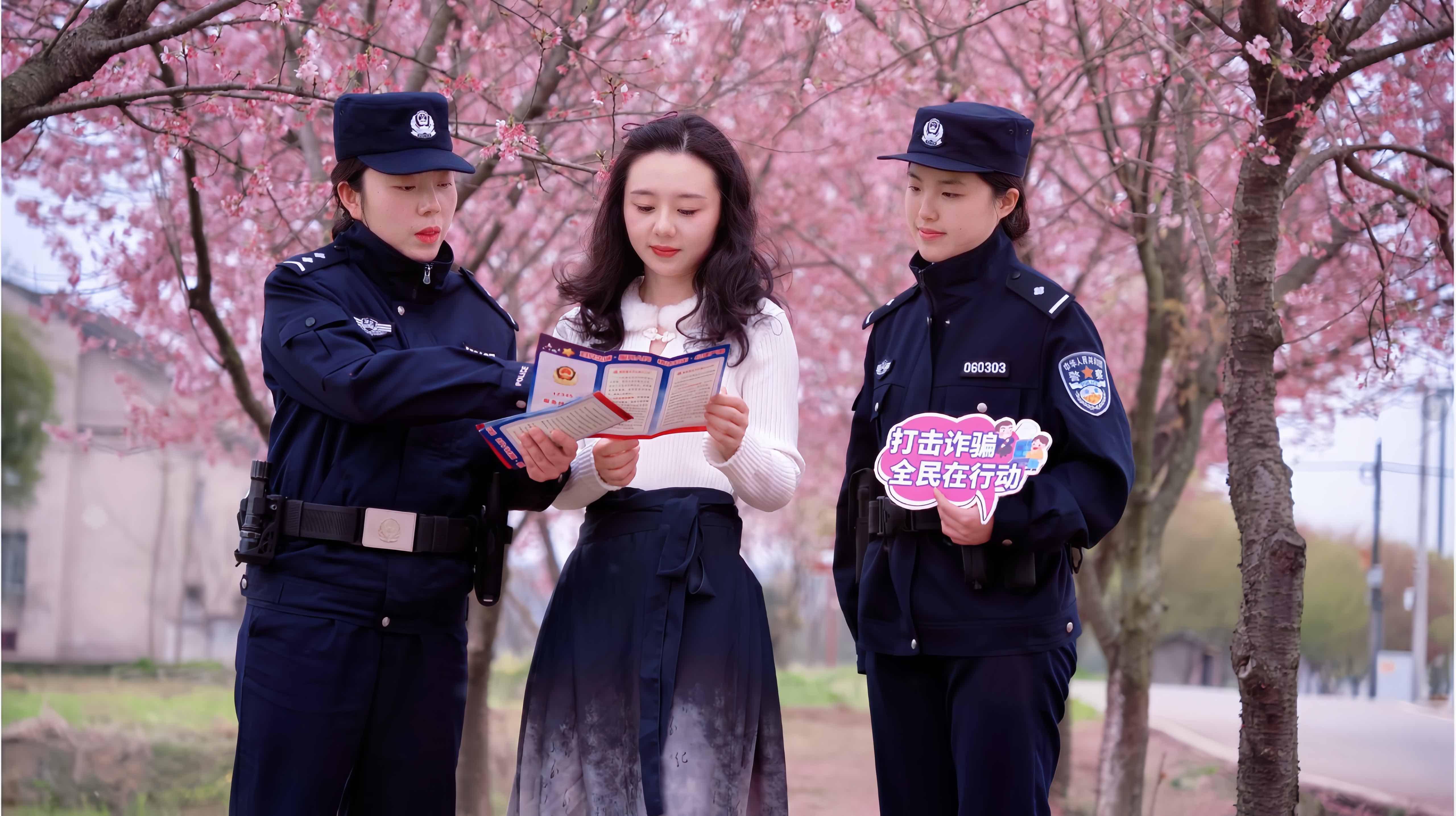 圖為宜都市公安局民輔警開展反詐宣傳,提醒游客守好“錢袋子”。