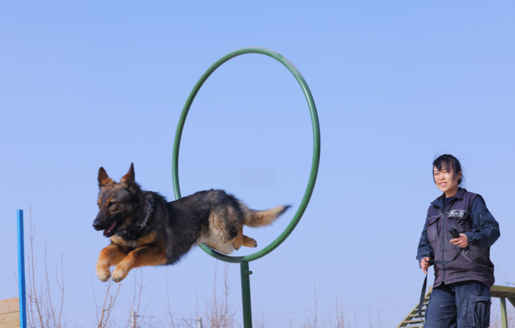圖為郭雪晨正在對(duì)警犬開(kāi)展“全科目、精細(xì)化”針對(duì)性訓(xùn)練。