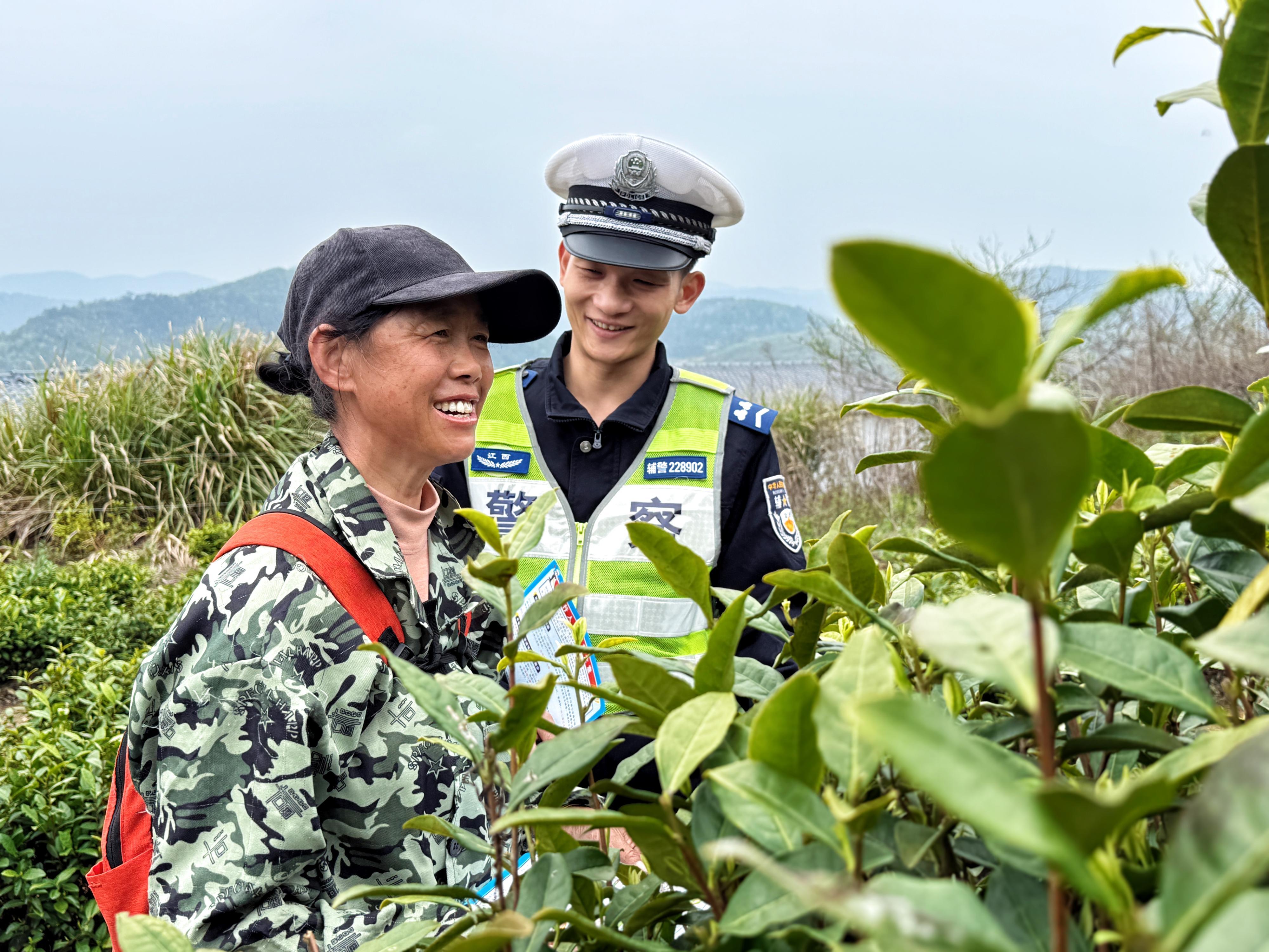 眼下正是清明茶的最佳采摘期,江西省武寧縣公安局交管大隊柯垅中隊組織民輔警走進(jìn)轄區(qū)茶園,通過嘮家常、以案說法、互動答疑等方式,向茶農(nóng)宣傳“一盔一帶”等交通安全知識,提醒茶農(nóng)安全駕駛、文明出行。