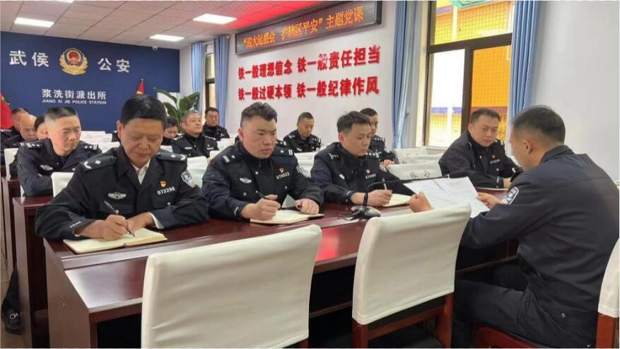 “同志們,我先代表支部班子表個(gè)態(tài):我們將身先士卒,始終帶頭站在大運(yùn)安保第一線,帶著大家一起干!”在四川省成都市武侯公安漿洗街派出所的會(huì)議室里,派出所黨支部正在開(kāi)展“迎大運(yùn)盛會(huì)、護(hù)轄區(qū)平安”主題黨課活動(dòng)。黨支部書記、所長(zhǎng)熊建在表態(tài)后,向全體黨員民警發(fā)出倡議:“也請(qǐng)每一名黨員民警積極響應(yīng)號(hào)召,充分發(fā)揮先鋒模范作用,團(tuán)結(jié)帶領(lǐng)全所民輔警全力投入,堅(jiān)決守護(hù)大運(yùn)會(huì)的絕對(duì)安全!”