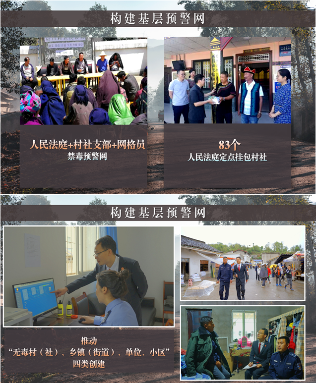 借鑒“楓橋經(jīng)驗(yàn)”,構(gòu)建“人民法庭+村社支部+網(wǎng)格員”禁毒預(yù)警模式,全州83個(gè)人民法庭定點(diǎn)掛包村社、包干到人,定期走村入戶教導(dǎo)群眾防毒,培訓(xùn)督導(dǎo)網(wǎng)格員落實(shí)毛發(fā)、污水檢測(cè),從源頭上預(yù)防和減少涉毒違法犯罪,推動(dòng)“無毒村(社)、鄉(xiāng)鎮(zhèn)(街道)、單位、小區(qū)”四類創(chuàng)建。