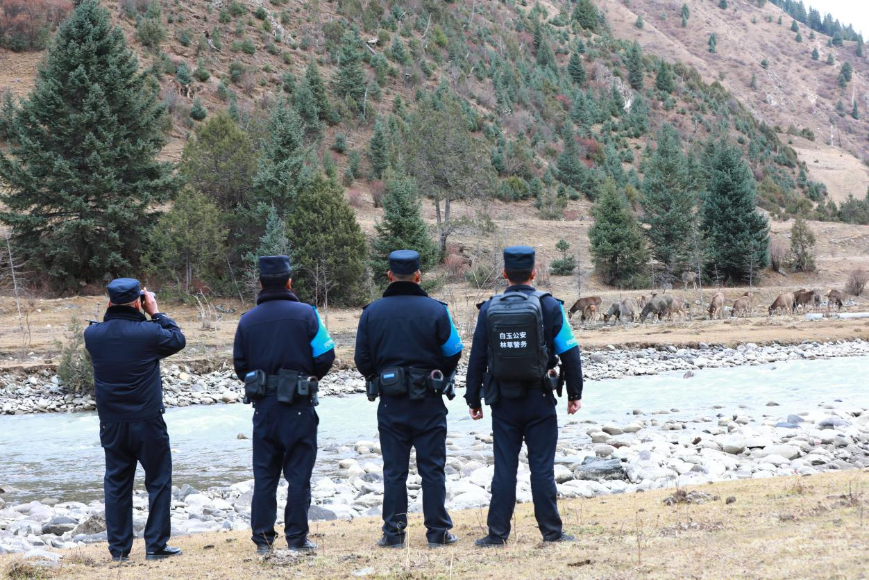 白玉縣共有森林面積53萬(wàn)公頃,森林蓄積量位居全省第二、全州第一。3000多只白唇鹿,常年現(xiàn)身轄區(qū)察青松多自然保護(hù)區(qū)奔跑嬉戲,這是他眼里最靈動(dòng)的風(fēng)景線。自2013年4月在白玉縣森林公安局參加工作以來(lái),8年時(shí)間他都與林為伍,堅(jiān)守在護(hù)航生態(tài)安全第一線,為“金沙林海盛德白玉”的名號(hào)越唱越響作出了突出的貢獻(xiàn)。2017年大年三十晚上,他成功偵破“2017.02.03”非法獵捕殺害珍貴瀕危野生動(dòng)物白唇鹿案,嫌犯被判處有期徒刑10年半,在全縣上下形成了空前的高壓震懾態(tài)勢(shì)。2023年11月9日傍晚,高照洪和森警大隊(duì)聯(lián)合巡山途中,在麻絨鄉(xiāng)察青松多自然保護(hù)區(qū)偶遇上百只下山喝水覓食的白唇鹿,可愛同框成為了一段舉國(guó)熟知的人與自然和諧佳話。