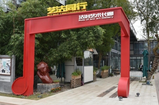 川音藝谷法治文化體驗(yàn)基地位于新都區(qū)石板灘街道韓娥社區(qū),基地以做實(shí)普法體驗(yàn)場(chǎng)景、做強(qiáng)法治藝創(chuàng)產(chǎn)業(yè)、做精藝創(chuàng)法律服務(wù)、做優(yōu)園區(qū)法治化營商環(huán)境為抓手,積極探索“守法普法”的新模式?;亻T頭采用二八音樂符號(hào)藝術(shù)變型設(shè)計(jì),突出普法抓住“關(guān)鍵少數(shù)”。法治雕塑廣場(chǎng)采用經(jīng)典法治故事雕刻作品,展現(xiàn)民法典基本原則理念。法治長(zhǎng)廊采用法治藝術(shù)場(chǎng)景引導(dǎo)+典型案例釋法拓展+交互教育沉浸體驗(yàn)的方式展現(xiàn)熊博士的法治人生。同時(shí),使用四川獨(dú)有物種熊貓,創(chuàng)作形象的熊貓法字LOGO;借鑒新都漢朝說唱俑,創(chuàng)作說法熊貓吉祥物。與川音藝谷項(xiàng)目的運(yùn)營方建立合作機(jī)制,舉辦新都區(qū)法治文化作品展覽、評(píng)選活動(dòng),鼓勵(lì)創(chuàng)作具有法治內(nèi)涵的雕塑、書法、攝影、音樂等藝術(shù)產(chǎn)品作品。此外,基地布局川音藝谷法律之家,發(fā)揮社區(qū)法律顧問服務(wù)團(tuán)隊(duì)的作用,積極為項(xiàng)目建設(shè)提供合同合法性審查等法律服務(wù),為川音藝谷文創(chuàng)園建設(shè)保駕護(hù)航?;剡€設(shè)立川音藝谷知識(shí)產(chǎn)權(quán)保護(hù)工作站,融合多部門的職能作用,營造良好的國際營商環(huán)境,增強(qiáng)藝創(chuàng)產(chǎn)業(yè)創(chuàng)作創(chuàng)新的活力。