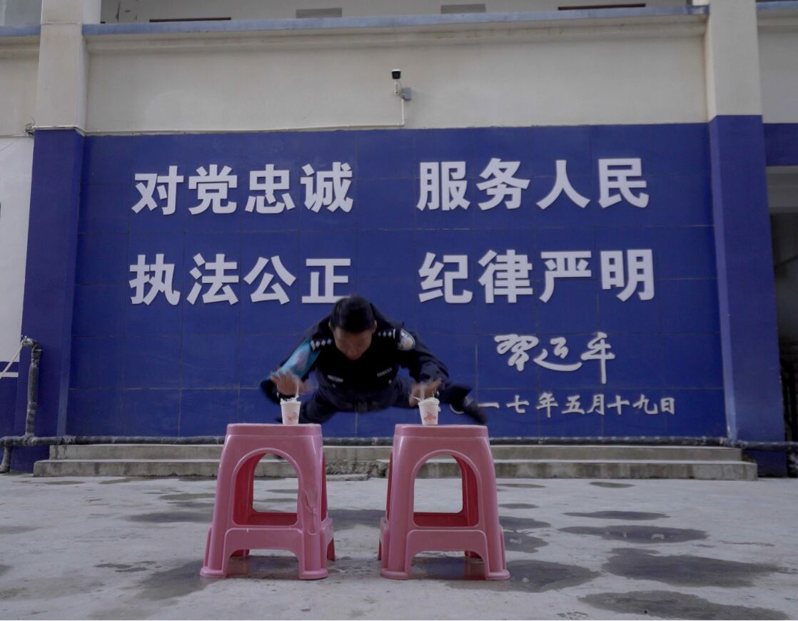 四川白玉民警挑戰(zhàn)“蜻蜓點水”俯臥撐