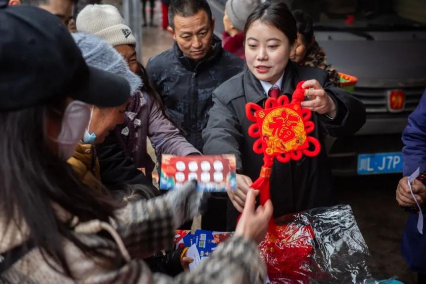 在普法的過程中,干警們?yōu)槿罕妿タ彀逭f唱民法典,歡快的節(jié)奏與人聲鼎沸的喧囂完美融合,成為最美新春交響樂。同時,還現(xiàn)場組織開展法律常識有獎問答,將法律知識融入活動,村民們既學(xué)習(xí)了法律知識,也拿到了實用小禮品,現(xiàn)場“法治”氛圍感拉滿。