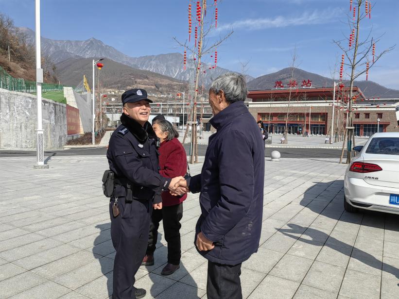 這樣的場景,在高鐵通車后屢見不鮮。為了確保站前以及周邊安全,茂縣公安成立了茂縣公安局富順派出所鐵路警務(wù)工作室,聯(lián)合特巡警開展站前巡邏、秩序維護(hù)以及巡線安全?!霸诂F(xiàn)有人員的基礎(chǔ)上,春節(jié)期間,我們派出所會(huì)隨時(shí)根據(jù)情況增派人手,保護(hù)群眾以及旅客的出行安全?!备豁樑沙鏊L趙全東說道。