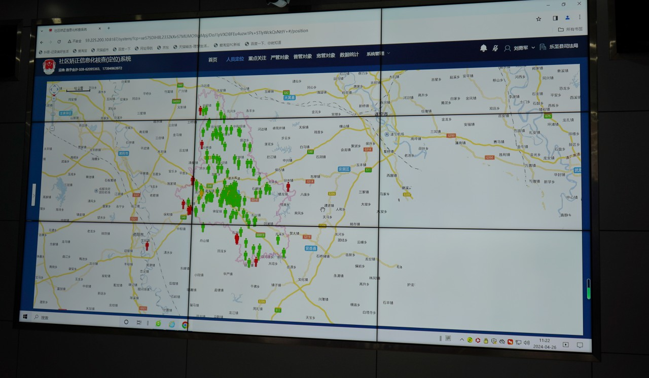 4月26日,記者來到樂至縣社區(qū)矯正中心,全縣331名社區(qū)矯正對象的動態(tài)信息在屏幕上一目了然,只需登錄社區(qū)矯正一體化平臺,工作人員就能對全縣社區(qū)矯正對象的情況進行分析研判。