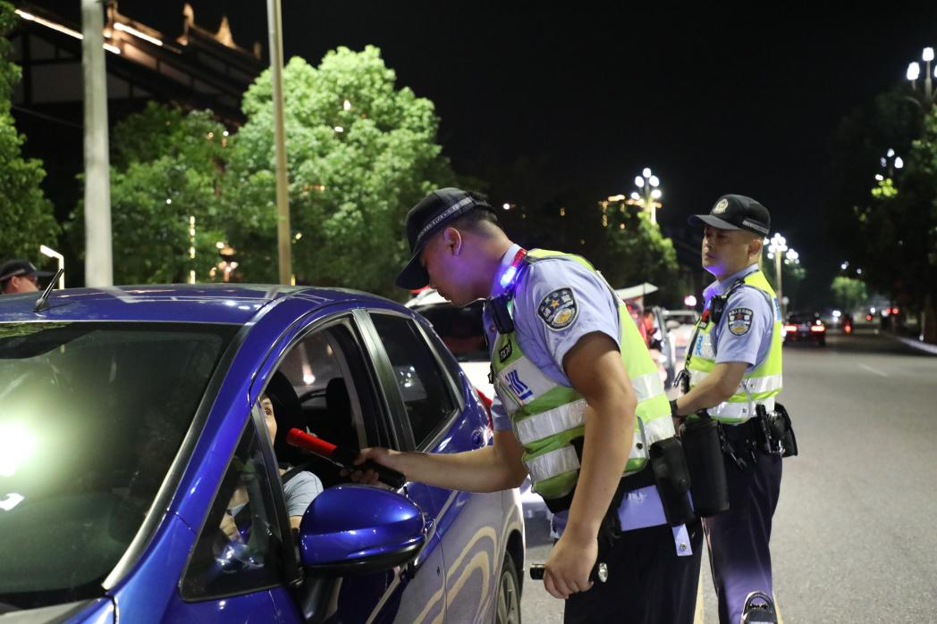 “您好,請(qǐng)停車熄火,接受檢查……”7月6日晚10時(shí)許,在潼南區(qū)隆鑫商圈美食街路口附近,駕車出行的市民正有序接受酒精檢測。