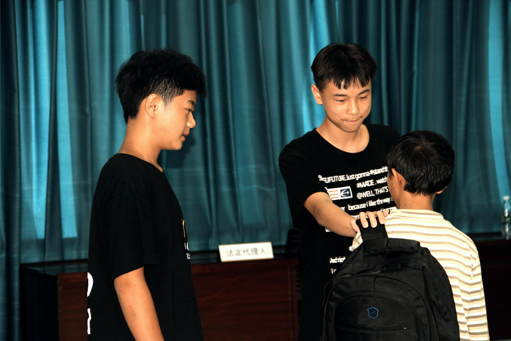 活動(dòng)現(xiàn)場,通過播放校園欺凌法治宣傳視頻、情景再現(xiàn)小短劇、模擬法庭、現(xiàn)場問答等方式逐一展開,此次活動(dòng)形式新穎,貼合實(shí)際,能夠充分的吸引學(xué)生參與其中。精心編排的“校園欺凌”情景劇,將犯罪的經(jīng)過完美演繹,這不僅是一次表演,更是一堂深刻的法治教育課、生命教育課。