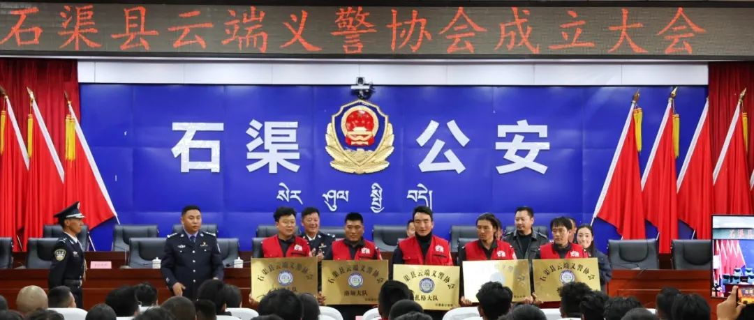 心有義,皆為警!為進一步破解警力局限,壯大發(fā)展基層群防群治力量,不斷探索共建、共治、共享的基層社會治理新格局。9月21日,四川省甘孜州首個“云端義警協(xié)會”在海拔4200米的石渠縣正式揭牌成立。成立大會上,主持人宣布了云端義警協(xié)會第一屆理事會選舉結果和《石渠縣民政局關于同意成立云端義警協(xié)會的批復》;與會代表觀看學習了內地義警工作經(jīng)驗交流微視頻;新當選的云端義警協(xié)會會長做了表態(tài)發(fā)言,并為云端義警協(xié)會及下屬各片區(qū)大隊和中隊代表授旗、授牌。